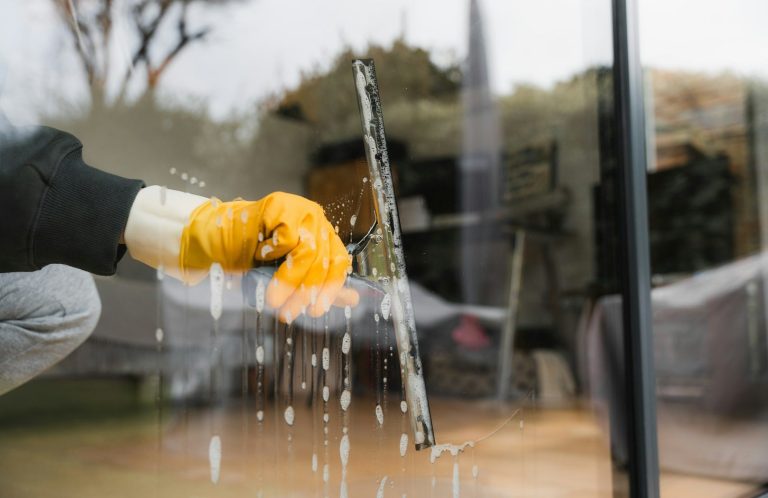 Reinigung von Fensterinnenseiten und -außenseiten, einschließlich Rahmen und Fensterbänken.